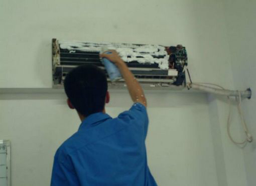 | 宁城空调维修师傅给宁城用户上门维修清洗空调。 |